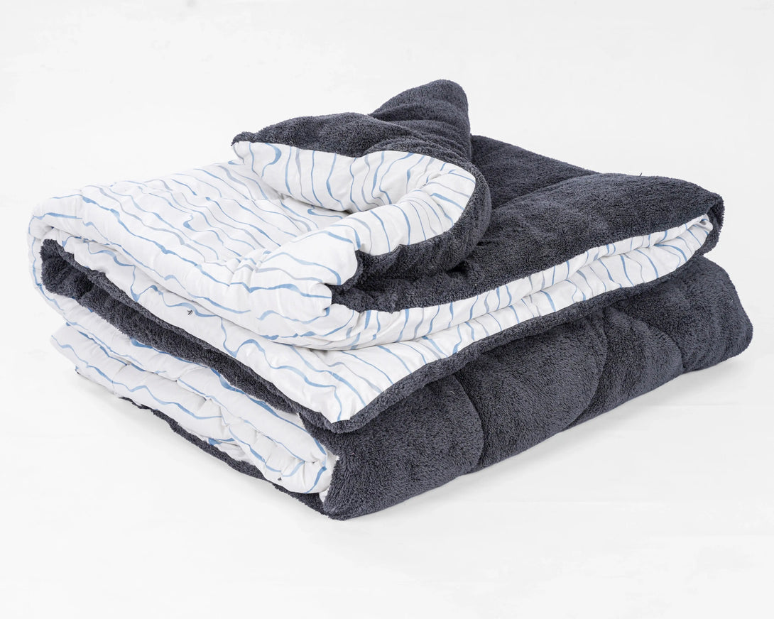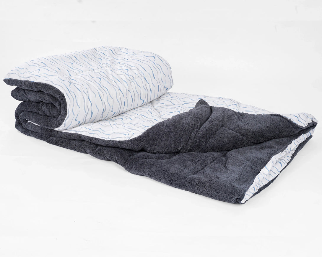 اللحاف الشتوي الفرو دبل فيس بلون بلو ويفز العصري