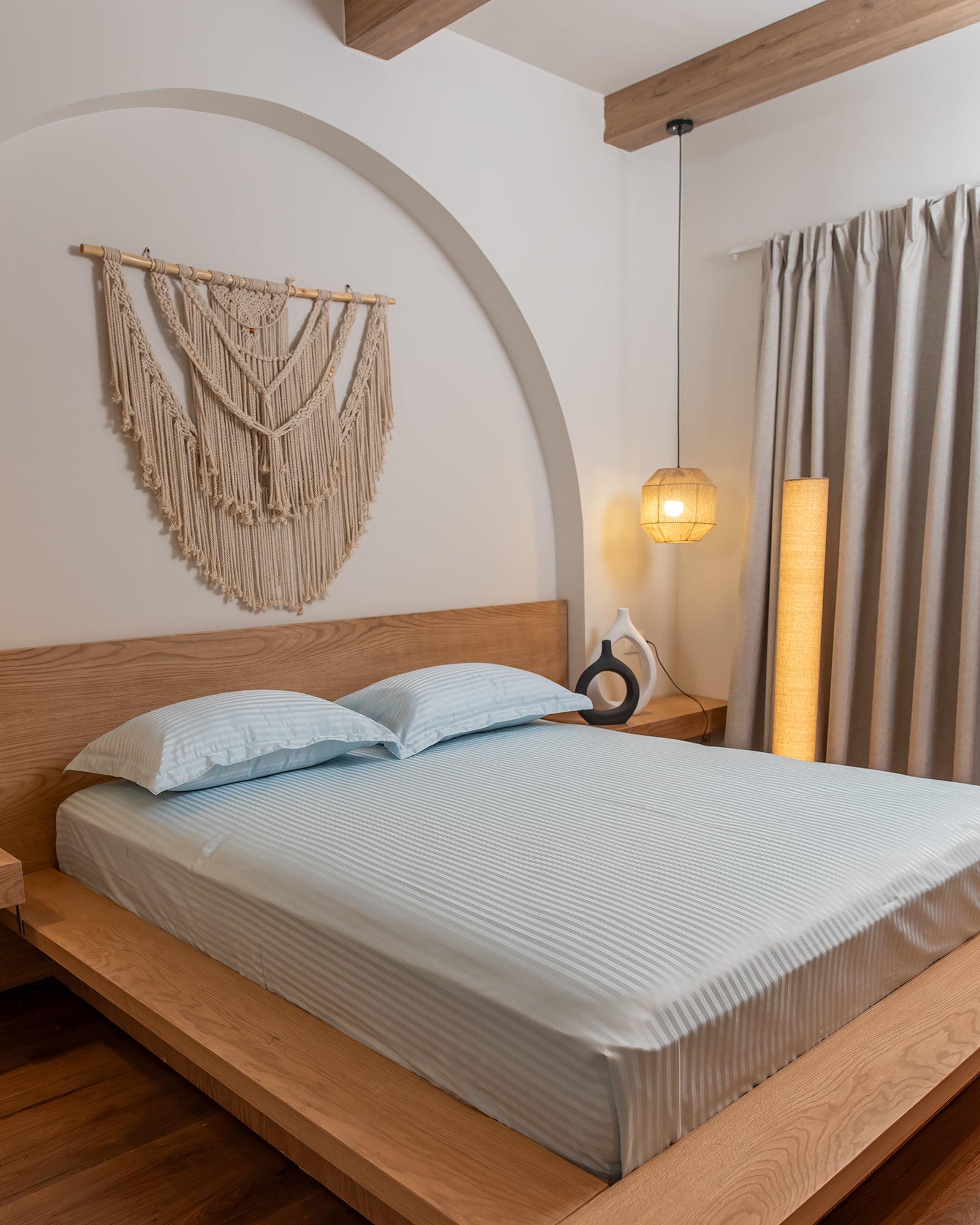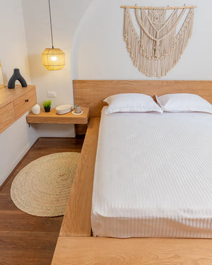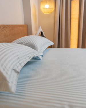 بنوم هادئ ومريح مع ملاءات السرير الاسترايب المعطرة بعطر B Comfort السحري لتحسين جودة النوم. الملاءة مصنوعة بمزيج بين القطن الناعم والساتان الحرير المعالج ضد الوبر والبهتان والإنكماش، بتصميم بسيط وأنيق يضفي لمسة من الفخامة على غرفتك. متوفرة بجميع المقاسات وبعدة ألوان تناسب جميع تصميمات غرف النوم ومناسبة لجميع الفصول بتهوية عالية.